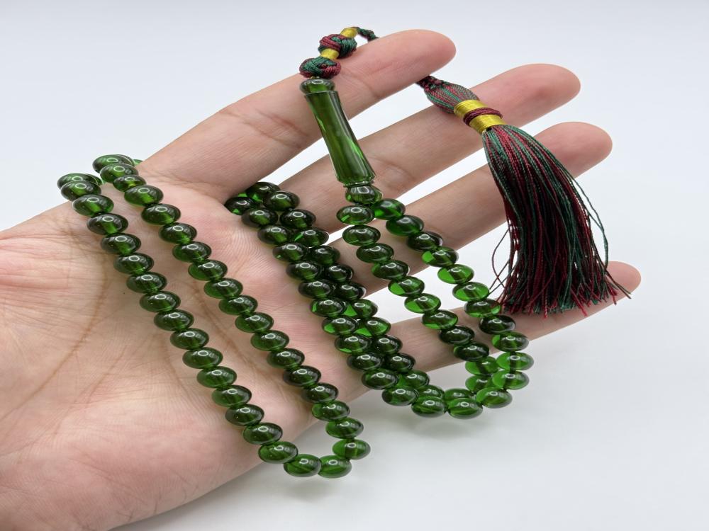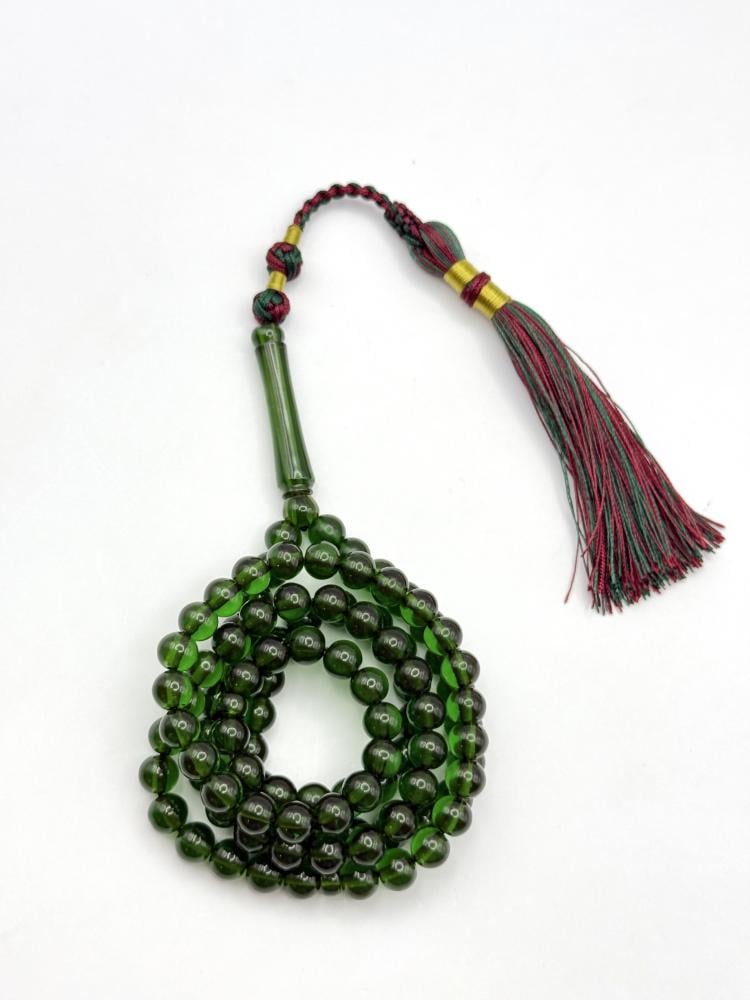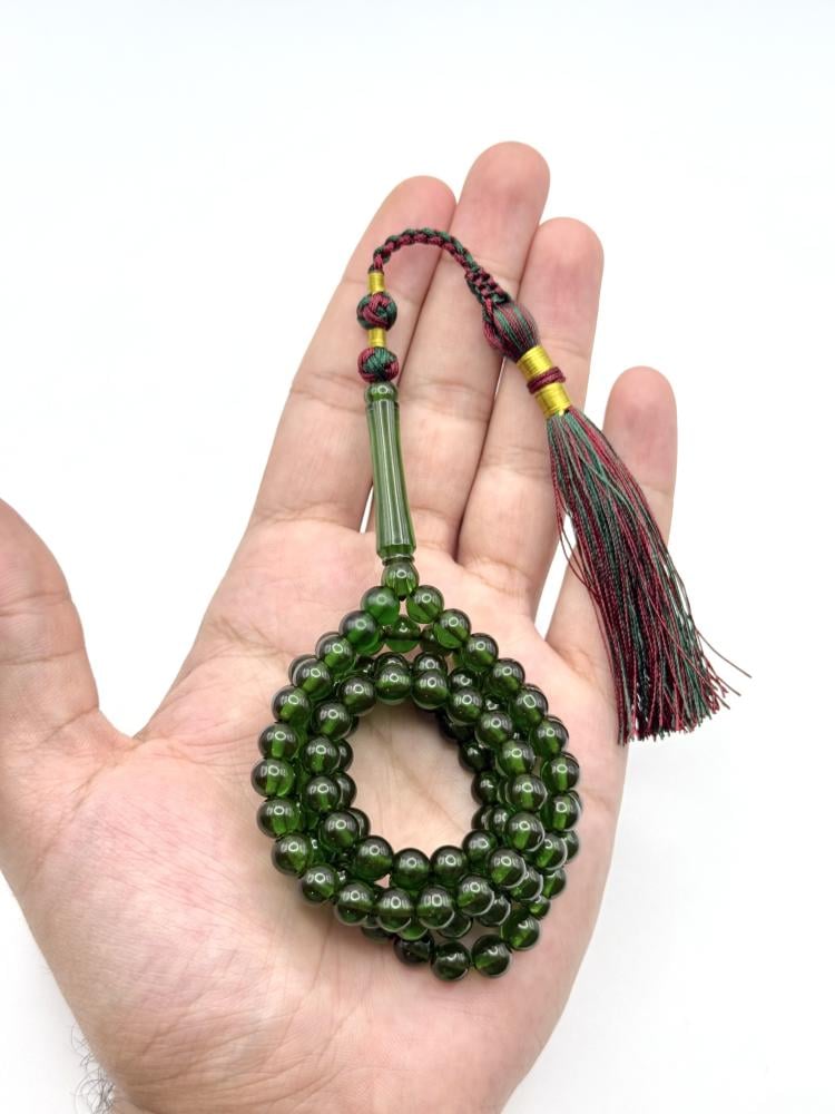 مواصفات سبحة زعفران أخضر شفاف كركوشة يدوية: