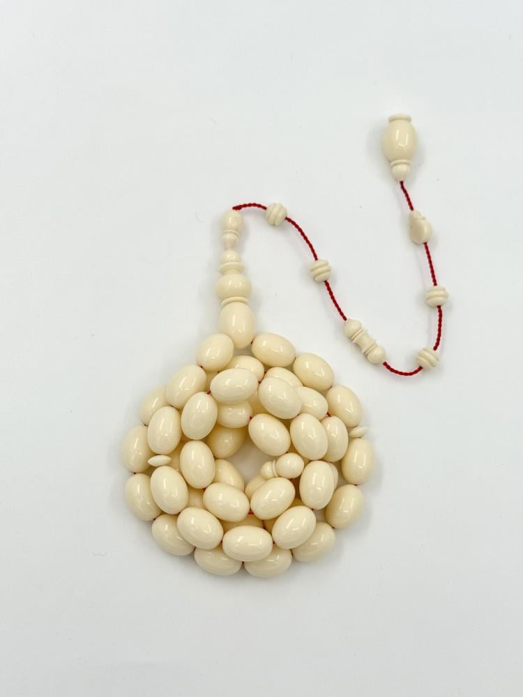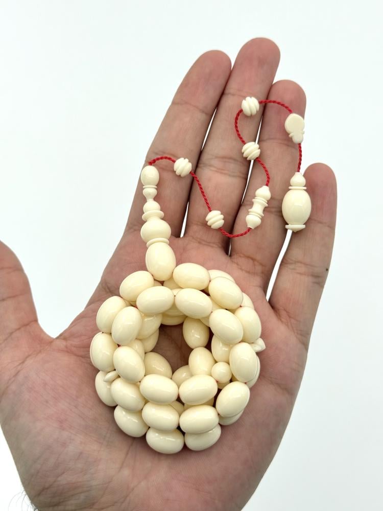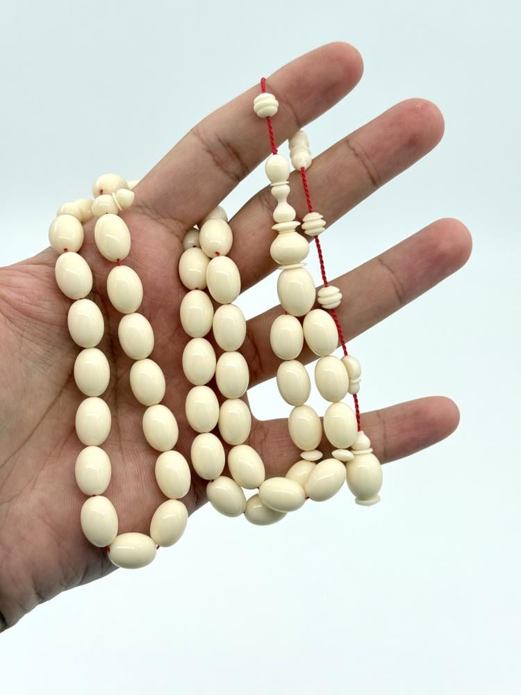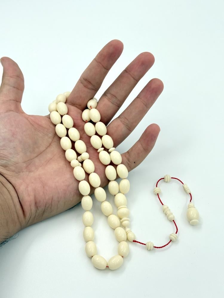- السبحة مصنوعة من قطع جديدة من لعبة الدومينو أو الضومنة.