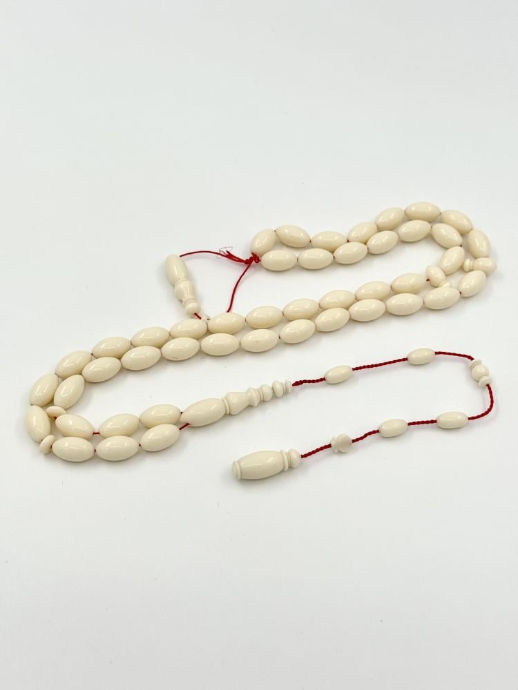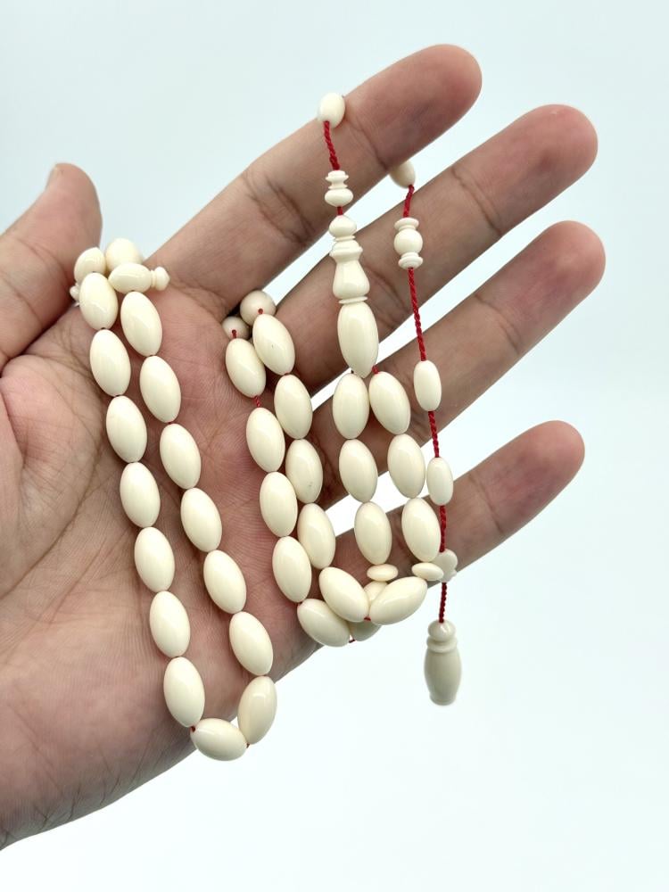 - السبحة مصنوعة من قطع جديدة من لعبة الدومينو أو الضومنة.