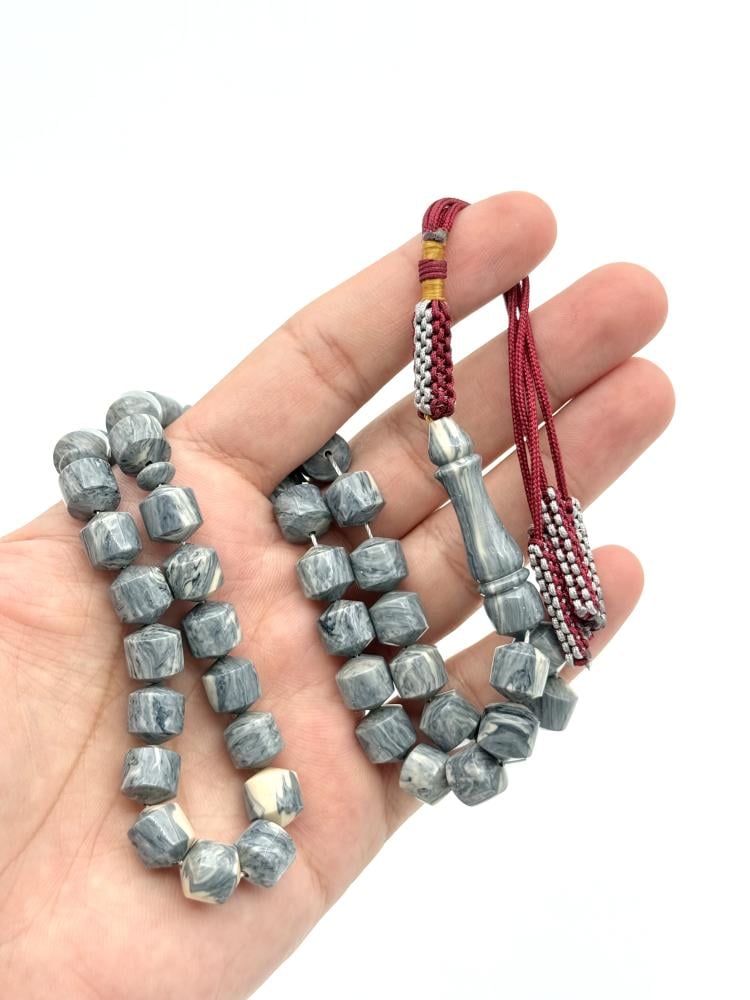 سبحة فاتوران رمادي بتمليكة فاخرة . السبحة تأتي بقصة صندوقية فاخرة