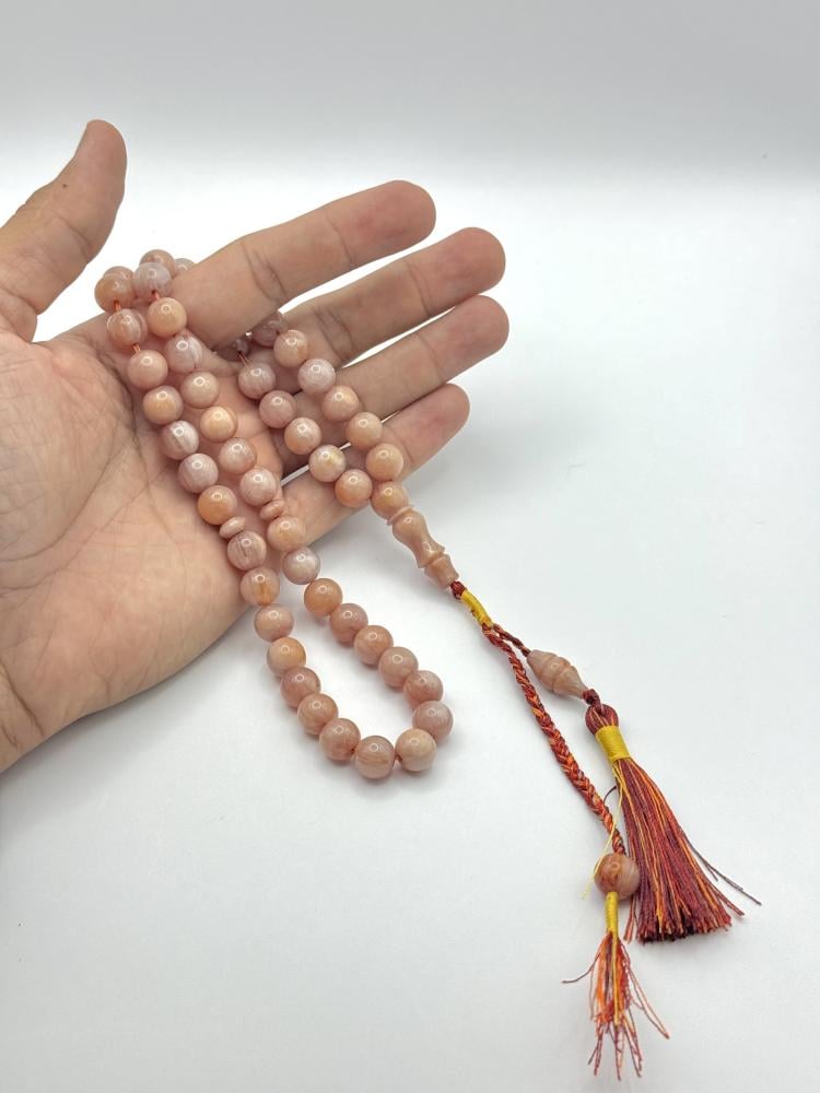 نقدم لكم سبحة من الفاتوران بلون لحمي أو ما يعرف بلون الحنفيات مع كركوشة يدوية مميزة.