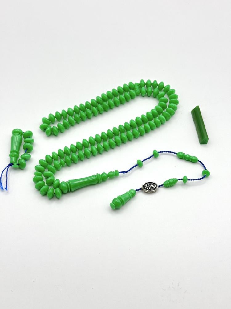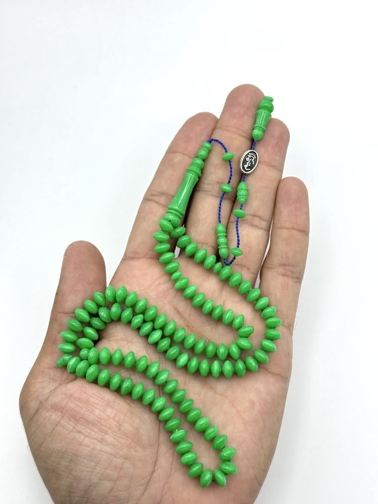 نقدم لكم سبحة فاخرة من مساطر امريكية قديمة بلون أخضر مميز.الوزن : 21 جرامالمقاس : 5*7 ملمالخرز : 99 خرزة