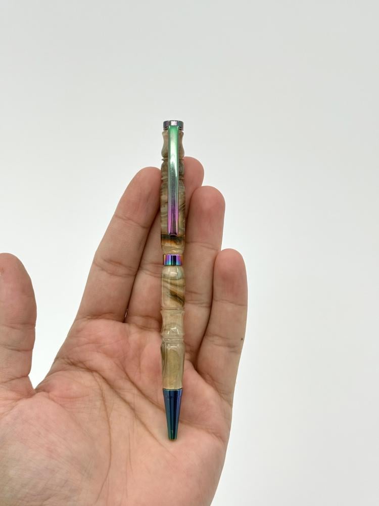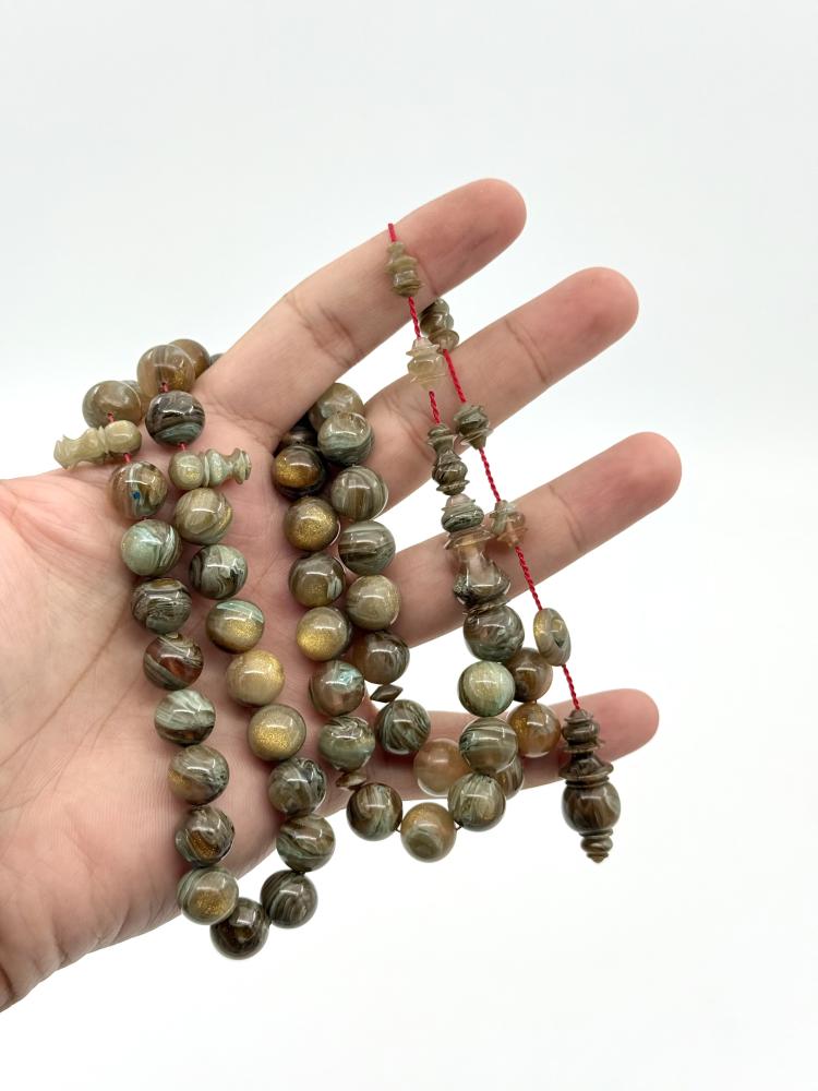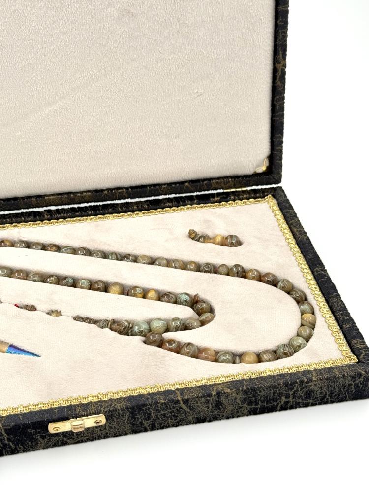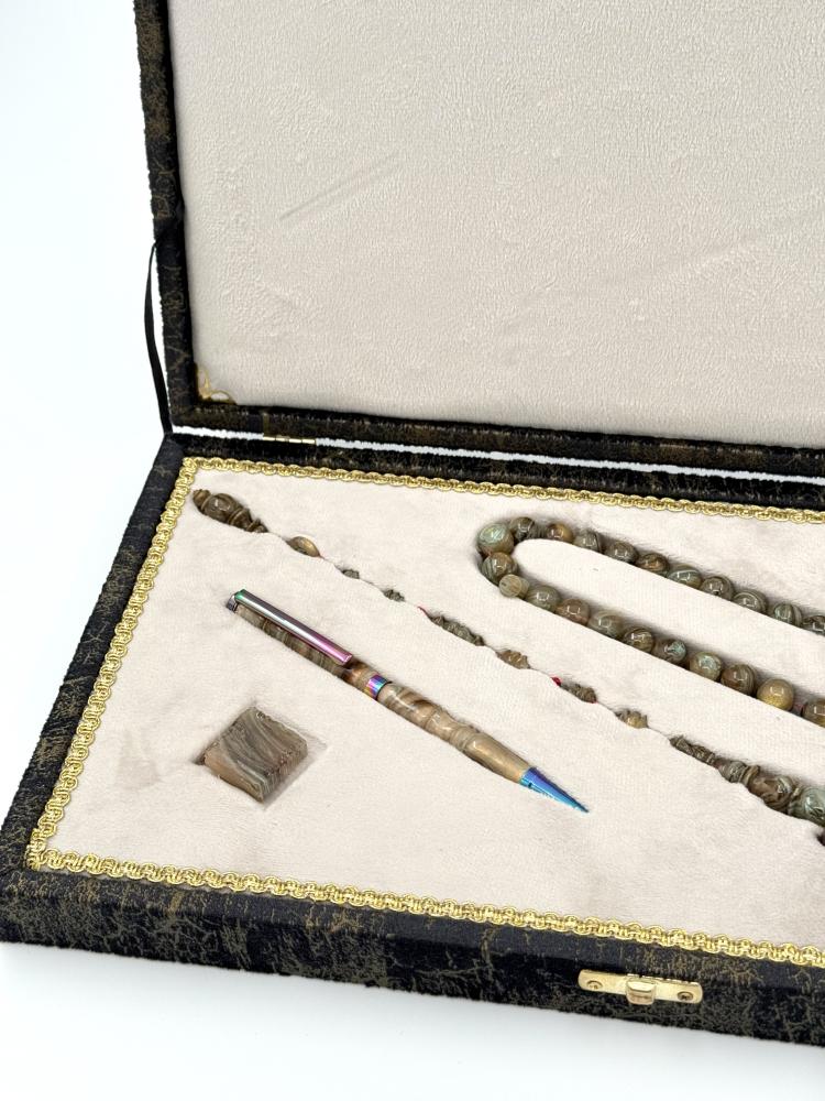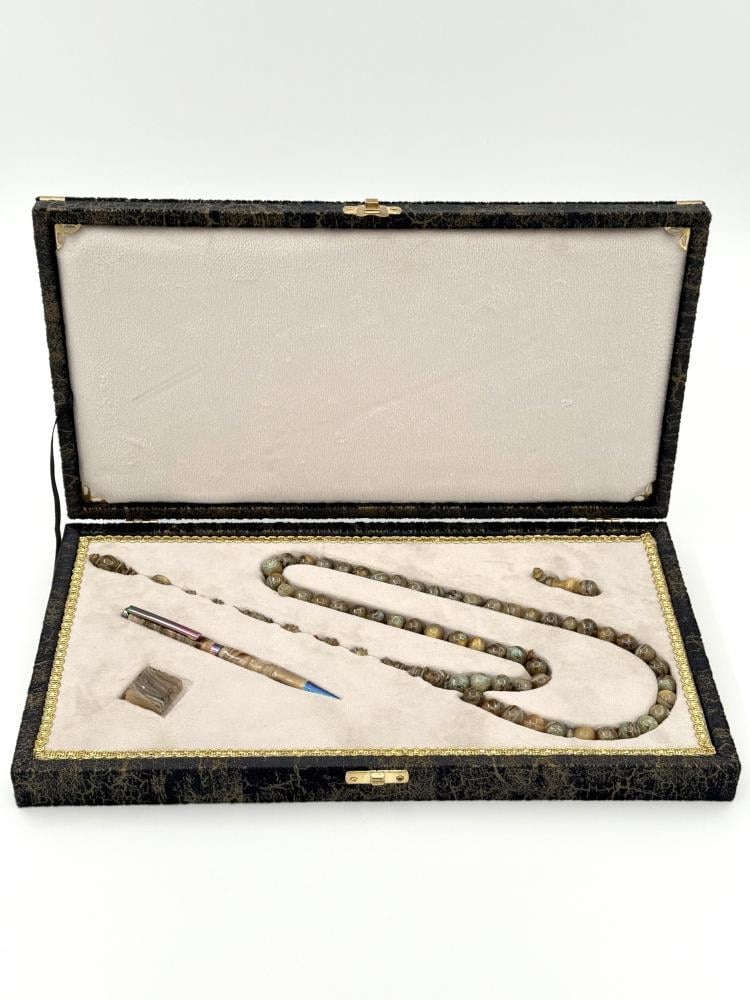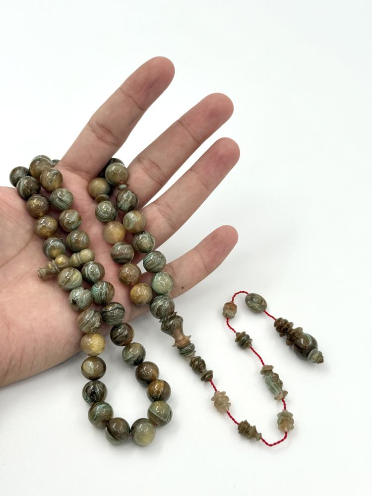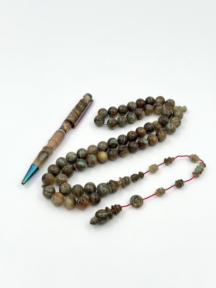 - تم خراطة السبحة والقلم من نفس الخامة يدوياً بحرفية عالية وإتقان.