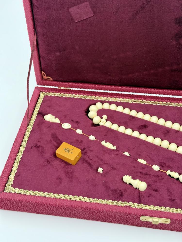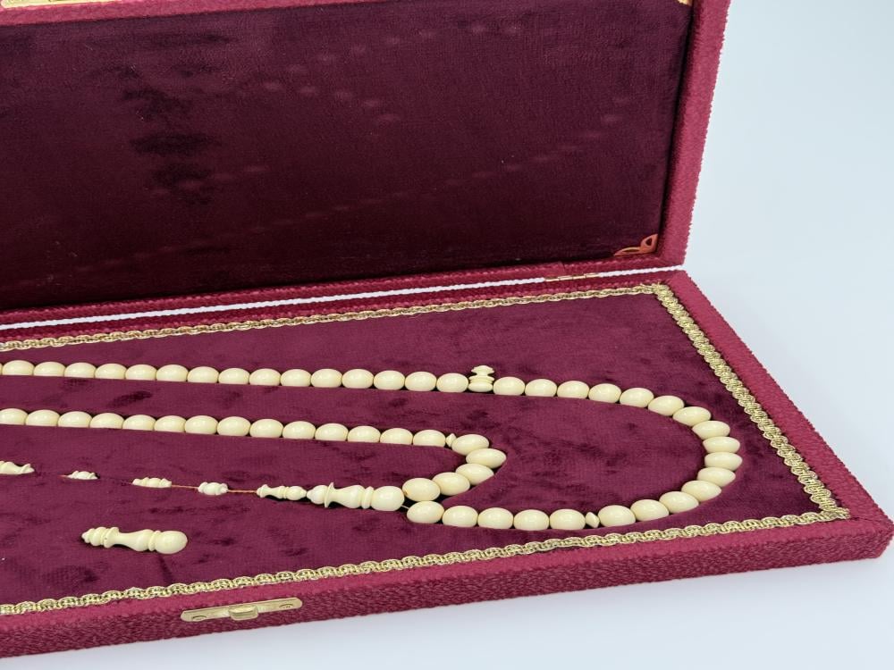 مسباح يأتي في صندوق خاص تم تفصيله للمسباح مع قطعة ضومنة كاملة وشاهد وكبوس احتياطس. يمكن تقديمه كهدية فاخرة أو يمكن تخزينه ك قطعة فاخرة.