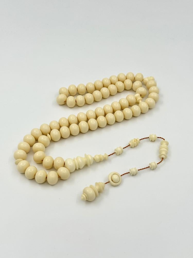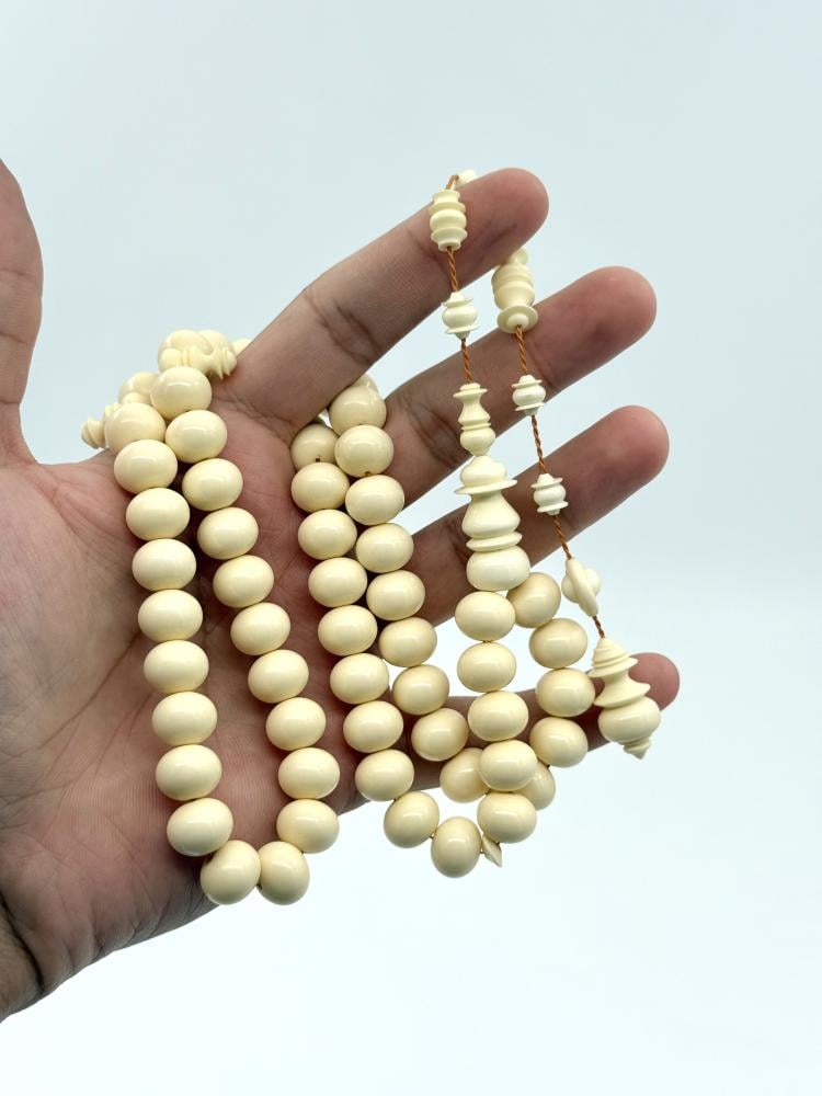 نقدم لكم سبحة مصنوعة يدويا من قطع قديمة من اللعبة الشهيرة الضومنة الصينية أو الدومنة.