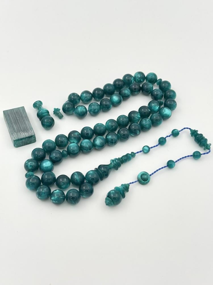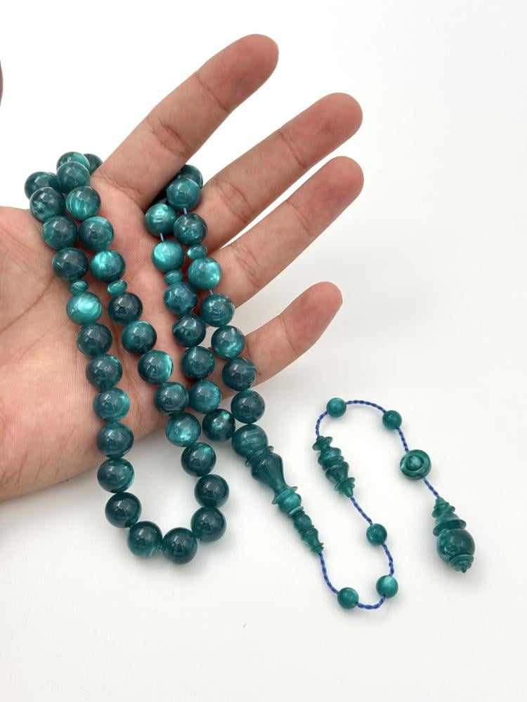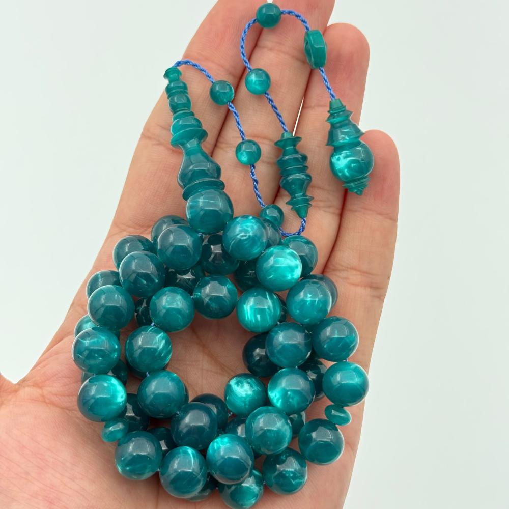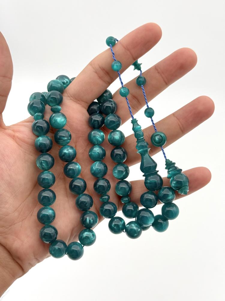 استمتع بجمال سبحة الفاتوران التركوازي المتوهج التي تجمع بين اللون النادر والتصميم الدائري المميز، لتكون إضافة رائعة لمجموعتك الخاصة. تتميز السبحة بتمليكة أنيقة تحمل توقيعًا فنيًا يعكس مهارة وحرفية صانعها، مما يجعلها خيارًا مثاليًا لعشاق المسابيح الفاخرة.