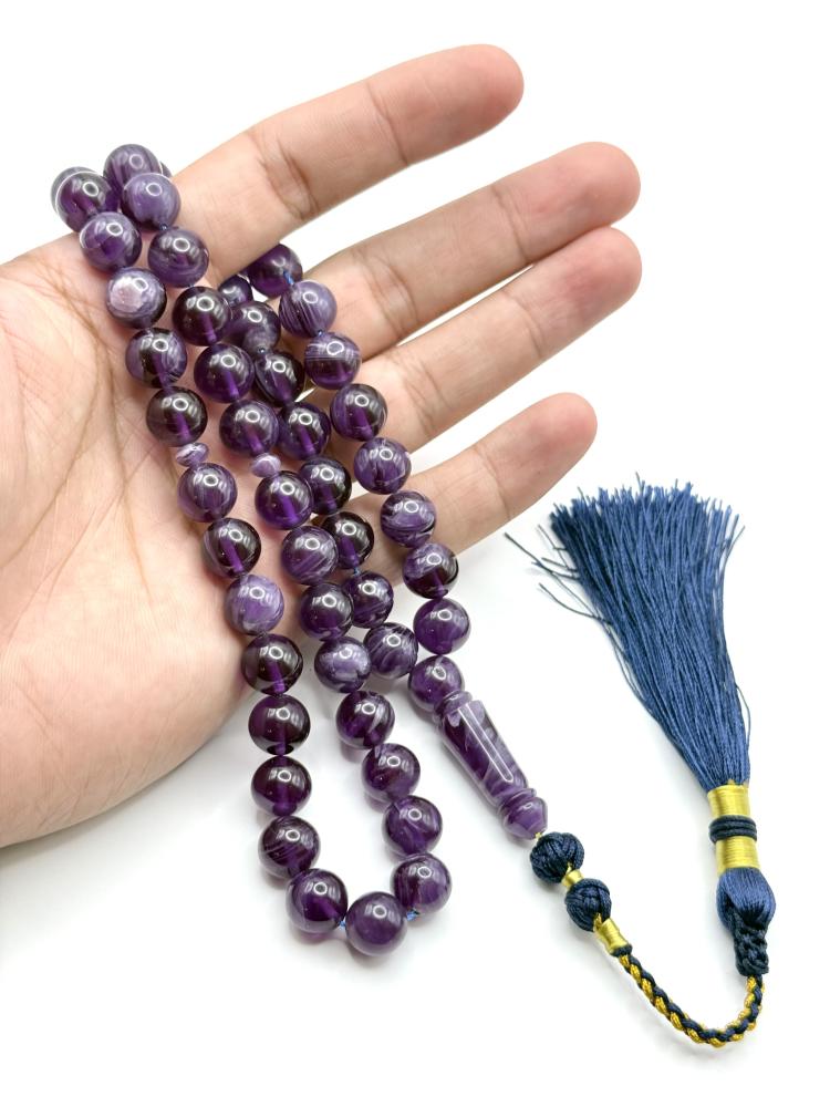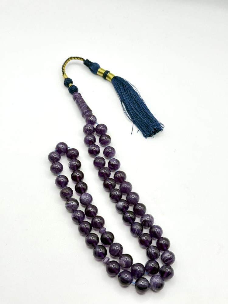 سبحة فاتوران لون بنفسجي دائري. السبحة تأتي مع كركوشة يدوية.