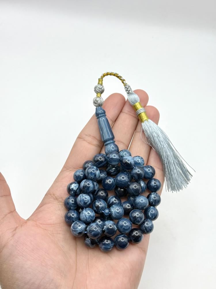 سبحة فاتوران لون أزرق مخلوط دائري. السبحة تأتي مع كركوشة يدوية.