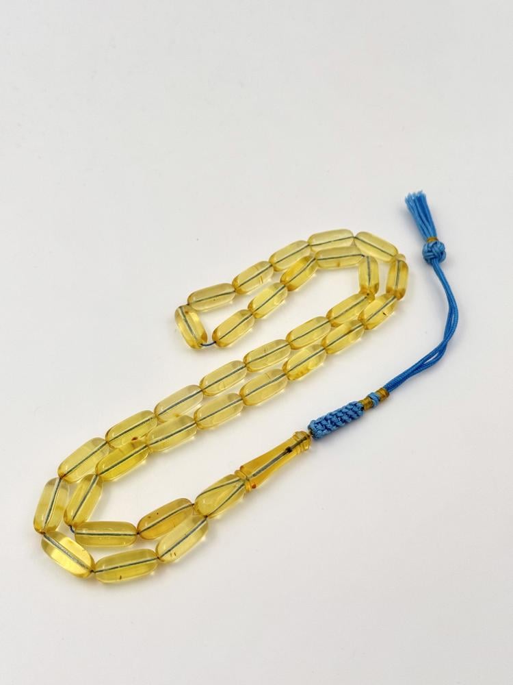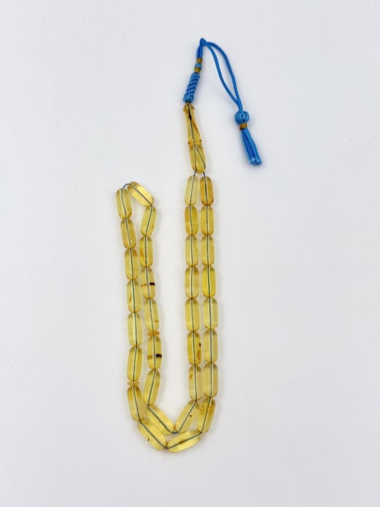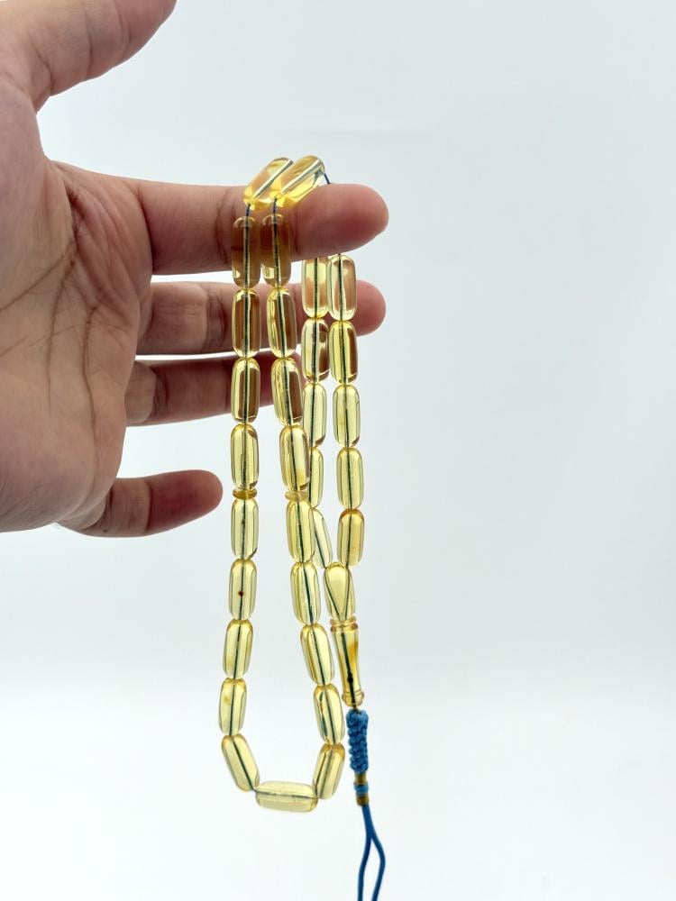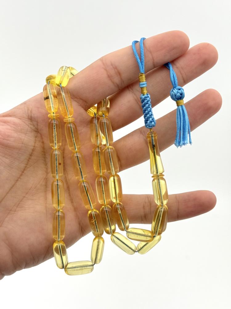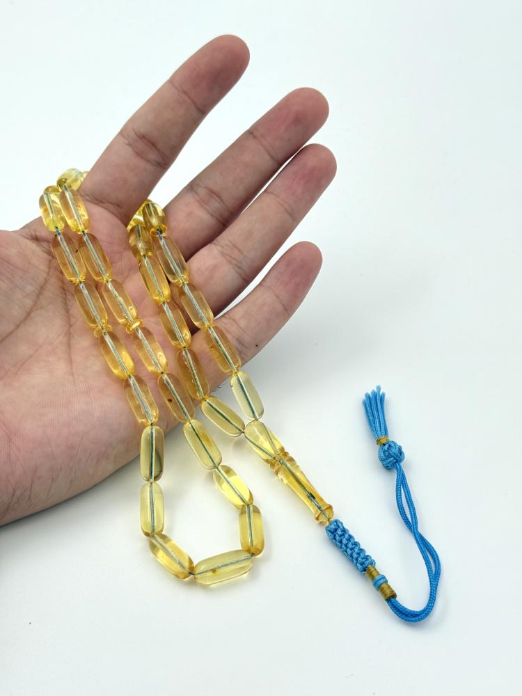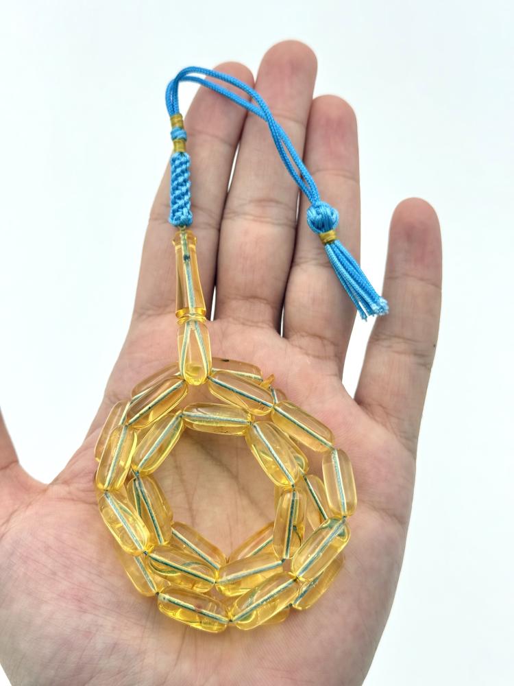 • المسباح مصنوع من أحجار كهرمان طبيعية شفافة.