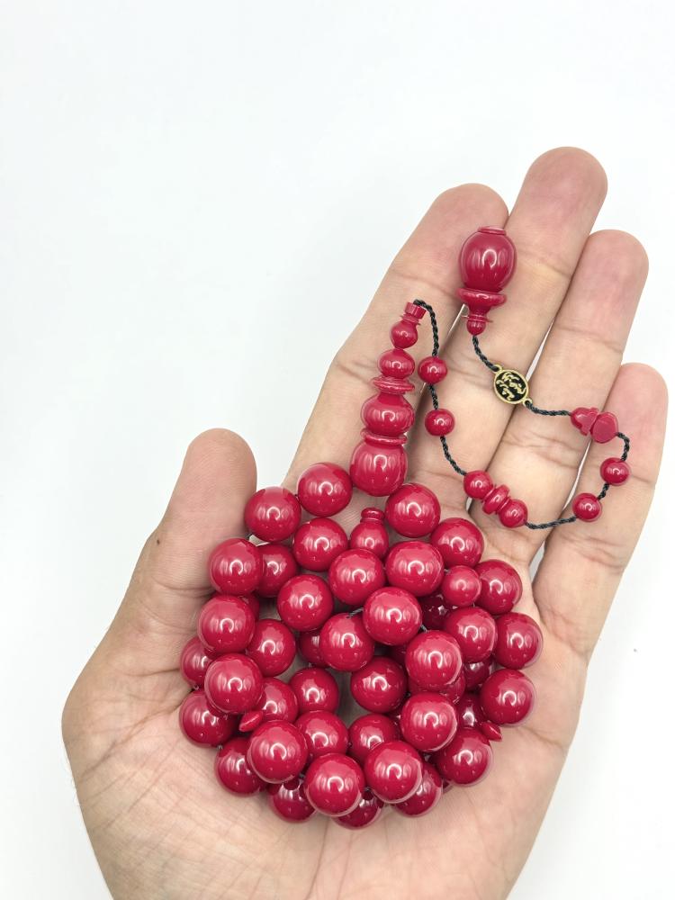 - اللون الأحمر الكرزي يعطي السبحة جاذبية استثنائية ويضفي عليها لمسة من الأناقة والجمال. إنه لون يرمز إلى الحيوية والشغف ويضفي طابعًا خاصًا على السبحة.
