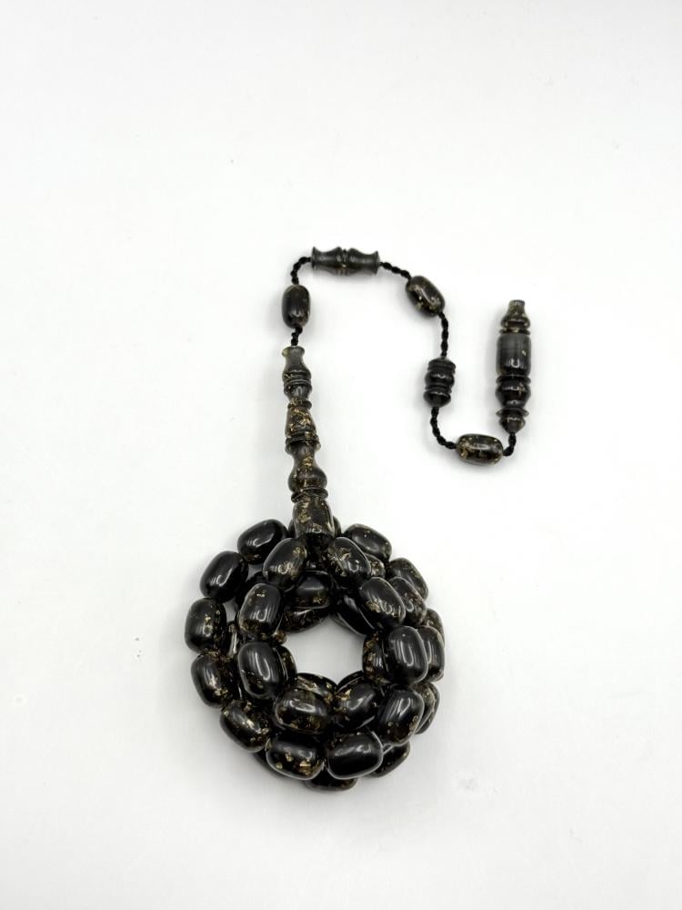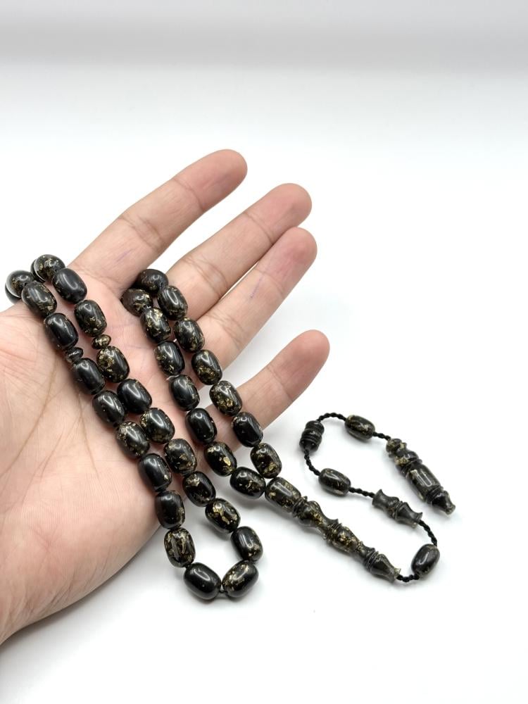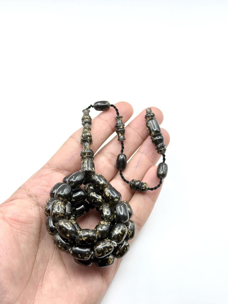 سبحة ورق الذهب فاتوران بقصة برميلية تمليكةالخرز: 45 خرزةالمقاس : 11.5*9 ملمالوزن : 38الخام : فاتوران صب جديد